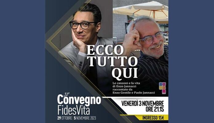 SAN BENEDETTO DEL TRONTO – Prosegue a San Benedetto del Tronto, in zona Palasport, il 33° Convegno Fides Vita. Questa sera, venerdì 3 novembre, alle ore 21.15 l’atteso spettacolo “Ecco tutto qui, omaggio a Enzo Jannacci”. Paolo Jannacci, figlio del compianto artista, ed Enzo Gentile, giornalista e critico musicale, ci accompagneranno in un appassionante percorso sulla vita unica e irripetibile di Enzo Jannacci tra aneddoti, racconti e canzoni. Domani, sabato 4 novembre, alle 18.30, avrà luogo l’incontro – testimonianza con Fabrizio Fossati, ex ospite della Nuovo Cortile, comunità che opera in campo educativo, socioassistenziale e di avviamento al lavoro, che racconterà il cammino vissuto per uscire dalla tossicodipendenza. A seguire un Popolo in Festa! Domenica 5 novembre appuntamento alle ore 10 per la Santa Messa presieduta da don Patrizio Spina, Vicario Generale della diocesi di San Benedetto del Tronto. Nel pomeriggio, alle ore 18, Arianna Beccega e Luca Maggioni, coniugi di Ancona, condivideranno la loro esperienza di conversione particolarmente nell’amicizia con Roberto Andreucci e Daniela Urbinati, di Fides Vita, le cui testimonianze chiuderanno il Convegno.