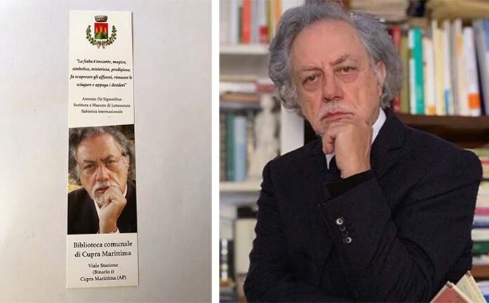 CUPRA MARITTIMA – È uscito a cura della Biblioteca Comunale di Cupra Marittima il nuovo segnalibro con una bellissima frase sulla fiaba di Antonio De Signoribus, scrittore, maestro di letteratura fiabistica internazionale, oltreché filosofo, e grande studioso di cultura orale. «Il segnalibro – afferma l’assessore alla cultura Daniela Luciani – è un simbolo della profonda riconoscenza da parte della Biblioteca Comunale al contributo culturale e intellettuale di Antonio De Signoribus, che porta alto il nome di Cupra Marittima in Italia e nel mondo. Grazie a questo utile e importante segno i tanti lettori potranno conoscere e apprezzare le opere del nostro stimato concittadino». «È un omaggio che la Biblioteca Comunale di Cupra Marittima – sottolinea la bibliotecaria e referente della Cooperativa Innovative Multiservice, Valentina Lucadei – fa ad un suo illustre cittadino, nato e residente a Cupra Marittima, che sta occupando un suo spazio e una sua riconoscibilità non solo in ambito marchigiano, ma anche in quello nazionale e oltre». Il segnalibro è già disponibile in Biblioteca e sarà donato ai frequentatori della stessa. Entro la fine di novembre sarà presentato al pubblico durante una serata con letture e interventi. È una occasione unica per conoscere meglio e da vicino lo scrittore cuprense.