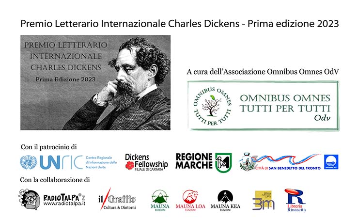 Ricordiamo che il Premio è organizzato dalla no-profit Omnibus Omnes OdV, di San Benedetto del Tronto, da sempre attenta alla cultura come strumento di innalzamento del livello di coscienza sociale.  Il premio ha il Patrocinio di ONU Italia – Unric, Centro di Informazione Regionale delle Nazioni Unite, di Bruxelles, della filiale italiana della Dickens Fellowship, fondata a Londra nel 1902, della Regione Marche e del Comune di San Benedetto del Tronto. Tra le collaborazioni, citiamo quella con la Biblioteca Comunale Lesca, con il Gruppo Editoriale Mauna, e con i media partner Radio Talpa di Cattolica e Il Graffio di San Benedetto del Tronto. Presidente della Giuria dei Lettori è la Dott.ssa Giuliana Filippello, magistrato in servizio presso il tribunale di Ancona. Presidente della Giuria Tecnica è la Dott.ssa Marzia Dati,  Presidente della Filiale Italiana della Dickens Fellowship, Anglista e Dottore di Ricerca in Letteratura Nordamericana. Presidente onorario della sezione Poesie è Enrica Loggi, nota poetessa. Presidente della Giuria Rinascita è Laura Bartoli, traduttrice e divulgatrice specializzata nell’Ottocento inglese. Infine, Presidente del Premio è la Dott.ssa Raffaella Milandri, Presidente della Omnibus Omnes, scrittrice e giornalista. Nel Comitato d’onore, il Responsabile UNRIC Fabio Graziosi, del Presidente della Regione Francesco Acquaroli, del Sindaco di San Benedetto del Tronto Antonio Spazzafumo.