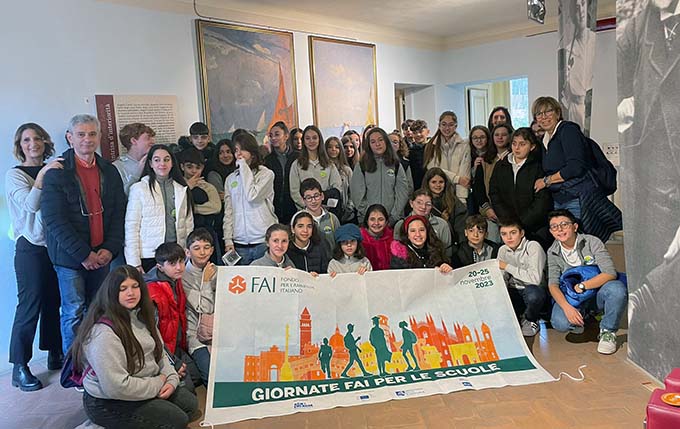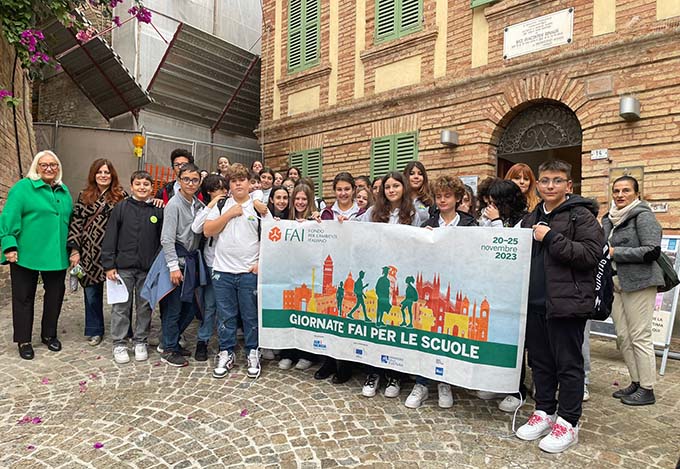 SAN BENEDETTO DEL TRONTO – Palazzo Bice Piacentini ha aperto le sue porte ai giovani studenti sambenedettesi grazie all’iniziativa “Giornate Fai per le scuole”, promossa dalla capogruppo Adele Gabrielli e dalla prof.ssa Silvana Giordano, delegata del Fondo Ambiente Italiano per le scuole di San Benedetto, con la partecipazione dell’Isc Centro. Sono stati, infatti, gli alunni delle classi III B e III G della scuola secondaria “Curzi” a fare da ciceroni ai loro compagni della seconda B e G, per conoscere un bene all’interno della città. Palazzo Piacentini è uno degli edifici storici di San Benedetto, oggi importante luogo di cultura. Costruito a partire dell’Ottocento per volere della famiglia Fiorani è ubicato nella parte alta del paese, dove un tempo si concentrava l’antico nucleo urbano. Per lungo tempo fu l’abitazione di Beatrice Piacentini-Rinaldi, detta Bice, donna di grande cultura nota in particolare per le sue poesie in vernacolo sambenedettese. Gioiello del palazzo è proprio il suo studio a cui si accede passando per l’archivio storico comunale in cui sono conservati due documenti antichissimi: il “Catasto della Comunità di San Benedetto del Tronto” del 1652 e il primo registro della serie dei Consigli (1696-1710). Al piano terra del Palazzo, si trova la Pinacoteca del Mare in cui sono esposte le opere di alcuni grandi protagonisti del panorama artistico italiano: lo svizzero Alfred Châtelain, Adolfo de Carolis, Angelo Landi e Armando Marchegiani, mentre nel seminterrato si trova la “Sala della poesia” dove si svolgono incontri culturali ed è visibile un cunicolo di grande interesse storico. Si tratta di una galleria datata I sec. d.C. che probabilmente in origine era collegata all’intera rete di gallerie che passa sotto il Paese Alto. Poter visitare Palazzo Piacentini ha rappresentato dunque un’occasione importante per avvicinare il mondo dei giovani alla storia e alla cultura del luogo in cui vivono. La decisione della Dirigente dell’Isc Centro, prof.ssa Elisa Vita e dei docenti della scuola “Curzi” di partecipare all’iniziativa prosegue una felice collaborazione tra l’istituto e il Fondo Ambiente Italiano attiva già da qualche anno. A preparare i ciceroni sono state le professoresse Loriana Capocasa e Sandra Antimiani, con la preziosa collaborazione della prof.ssa Alessandra Mazzocchi. Si ringraziano inoltre l’archivista Giuseppe Merlini e l’operatrice museale Anna Valeria che hanno accolto gli studenti all’interno del Palazzo.