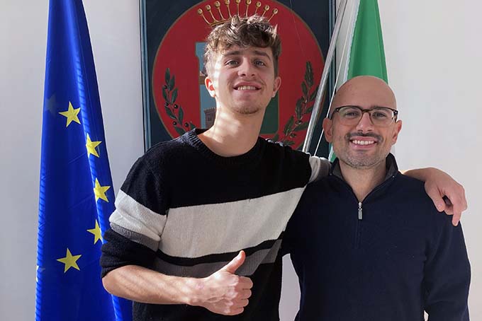 Lorenzo Zucchetti con il sindaco di Folignano Matteo Terrani