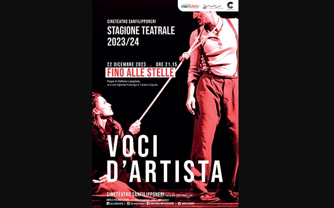 SAN BENEDETTO DEL TRONTO – Ultimo appuntamento del 2023 col botto per la stagione teatrale “Voci d’Artista” del Cineteatro San Filippo Neri di San Benedetto del Tronto. Venerdì 22 dicembre alle ore 21.15 va in scena “Fino alle stelle”, di e con Agnese Fallongo e Tiziano Caputo, regia di Raffaele Latagliata, consigliato persino da… Fiorello. “E mica ti cade dal cielo, sai? La felicità, quella… te la devi conquistare!” Così Tonino, cantastorie siciliano dall’animo poetico, convincerà Maria, fanciulla dal temperamento mite, ignara del suo straordinario talento, a seguirlo in un’impresa improbabile: scalare l’intero stivale alla ricerca di fama e gloria per arrivare… fino alle stelle. Un viaggio non solo lungo tutta la penisola, attraverso regioni, dialetti e leggende, ma anche dentro loro stessi, che li condurrà alla ricerca della grande occasione della vita.