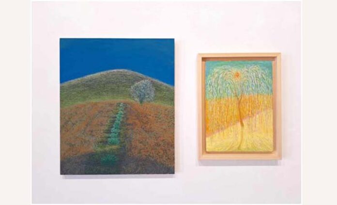Quadri sorridenti, non guardano la televisione, non leggono i giornali. Quadri di design primitivo, senza prepotenze geometriche o pretese di moderne utilità. Quadri di ingenua libertà, dai confini morbidi segnati dal verso dell’erba pettinata dal vento. Quadri di bellezza involontaria che non invecchia e non si trucca. Quadri di facili paesaggi difficili da trovare. Quadri ruralmente eleganti ma non competitivi. Poco mercantili. Fatti “per sottrazione”, con residui di sogni, cancellando tutto quello che disturba. Quadri realistici con dell’irreale nei colori anche (im)puri e (in)saturi (quel verde malachite, quei gialli post-impressionisti…). Quadri che sembrano un po’ pensieri dipinti (un’architettura dell’illusione), invece sono contemporanei e comprensibili, non hanno bisogno dell’incomprensibile critico.