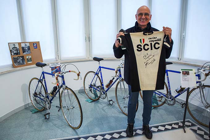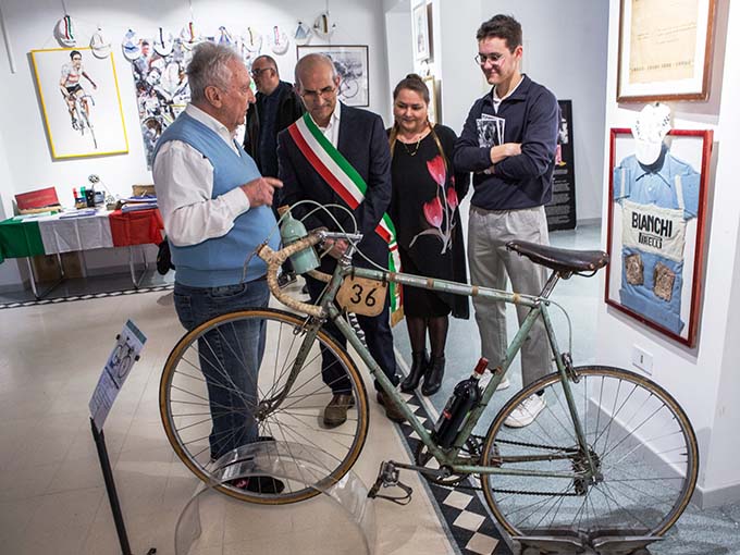 «In questa mostra – ha detto Baronchelli – c’è la storia del ciclismo, sport che, con qualsiasi tecnologia, anche quelle più esasperate, avrà sempre bisogno della fatica umana per esistere. Non è la bicicletta che fa la differenza, ma l’atleta che ci pedala sopra. Ai ragazzi dico di usare sempre il casco e di avvicinarsi a questo sport con pazienza, per evitare di stufarsi prima di vedere i risultati». Gianfranco Trevisan ha spiegato come questa esposizione sia stata definita «la più importante al mondo tra quelle delle bici dei campionissimi. Sono collezionista da 50 anni, quando il ciclista Del Gancia mi vendette una bici adoperata da Coppi. Posseggo 70 esemplari, la mia più che una passione è una malattia, nata quando correvo tra i dilettanti. Mi piacerebbe avere una bici sulla quale corse Eddy Merckx che ho già trattato, ma non dispero di averla in futuro».