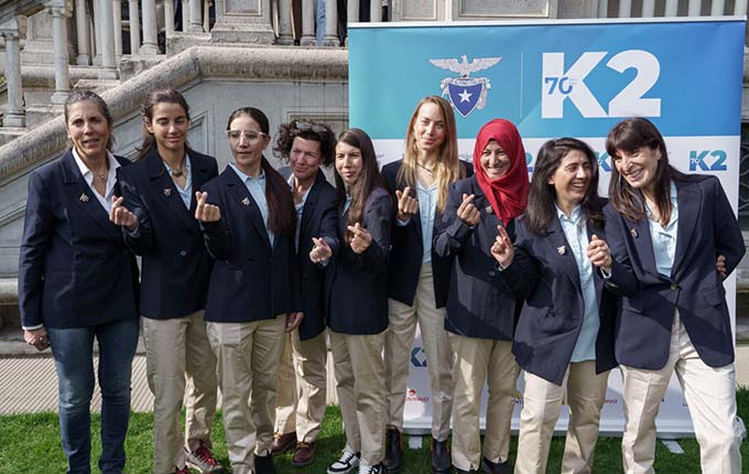 MILANO – Una spedizione tutta al femminile alla conquista della vetta del K2 per la prima volta. È l’impresa promossa dal Cai per celebrare l’anniversario della spedizione italiana del 1954 guidata ad Ardito Desio, che prima al mondo raggiunse la vetta del gigante del Karakorum. Settant’anni dopo, nove donne (quattro atlete e una dottoressa italiane, quattro pakistane) il 15 giugno partiranno con destinazione Pakistan per la seconda vetta più alta della Terra. L’iniziativa è stata presentata questa mattina a Milano, con la squadra al completo, tra giovani, giovanissime (la più piccola ha 19 anni) e “prime volte” alle prese con gli Ottomila: Federica Mingolla, Silvia Loreggian, Anna Torretta, Cristina Piolini, Samina Baig, Amina Bano, Nadeema Sahar, Samana Rahim, e il medico Lorenza Pratali sono state le protagoniste della giornata di lancio del progetto, organizzato dal Club alpino con EvK2Cnr, associazione che si occupa di ricerca scientifica e tecnologica in alta e altissima quota. Arriveranno al campo base il 29 giugno dove cominceranno le attività alpinistiche e l’acclimatamento, per poi tentare la vetta nella seconda metà di luglio. Non solo un’impresa sportiva, ma molto di più.