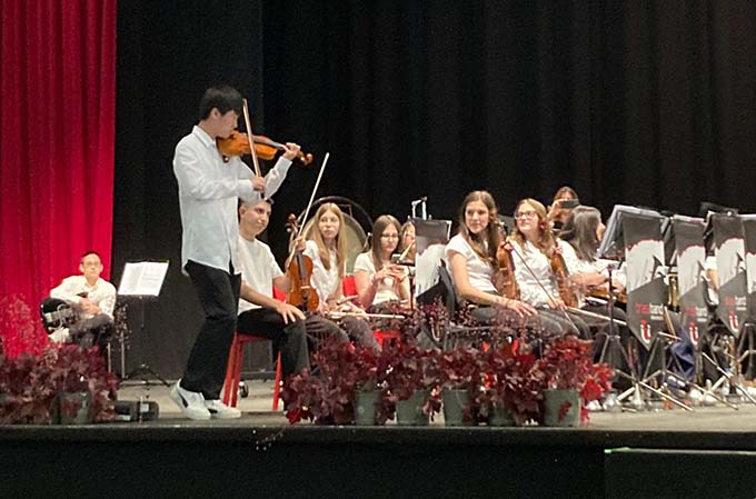 SAN BENEDETTO DEL TRONTO – “Guest star” d’eccezione per il Gran Galà degli Ottoni della Brass Band Uberetsch al Palariviera di San Benedetto. Ad aprire il concerto, che ha visto come protagonisti maestri del calibro di Lito Fontana e Tom Hutchinson, è stata l’orchestra dell’indirizzo musicale dell’Isc Centro. I ragazzi hanno dato vita ad una sessione di pratica orchestrale con i solisti della band, dando il loro contributo a quella che è stata una serata di alto livello artistico. Un concerto molto apprezzato dal pubblico, con atmosfere sonore e spessore artistico di cui raramente è possibile godere in un’esibizione dal vivo. Ai ragazzi sono andati i complimenti della dirigente, la professoressa Elisa Vita, presente all’evento assieme, tra gli altri, al senatore Guido Castelli e al sindaco di San Benedetto del Tronto Antonio Spazzafumo. «Alla proposta della Presidente dell’Associazione culturale Omnia Locis, prof.ssa Maria Pia Spurio di partecipare a questa meravigliosa manifestazione con una rappresentanza della nostra orchestra – dichiara la Dirigente Scolastica, prof.ssa Elisa Vita – ho subito aderito con entusiasmo. Gli alunni si sono preparati con impegno e dedizione e hanno atteso questo evento con grande concentrazione, guidati dai docenti Marco Travaglia e Luca Proietto. Confrontarsi con Tom Hutchinson e Lito Fontana e soprattutto suonare “Libertango” con quest’ultimo ha rappresentato per i ragazzi una fortissima emozione e per me, come Dirigente, vedere gli alunni così impegnati è stato motivo di orgoglio e di soddisfazione. La musica d’altro canto è un linguaggio universale che supera le barriere culturali, linguistiche, spaziali, temporali, generazionali e ci permette di comunicare le nostre emozioni in modo più profondo».