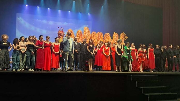 SAN BENEDETTO DEL TRONTO – Grande successo per il musical in lingua “La Bella Otero – L’ultima intervista”, messo in scena al Palariviera con un matinée completamente riservato a studenti, insegnanti e personale ATA dell’Istituto, preceduto da una breve conferenza illustrativa e seguito da un dibattito aperto alle domande degli spettatori. Lo spettacolo, unico nel suo genere, ha appassionato gli spettatori, in particolar modo gli alunni dell’Istituto Tecnico del settore Economico e del Liceo Linguistico: un musical originale, cantato e recitato in francese, spagnolo, inglese, tedesco e cinese, le cinque lingue studiate al “Capriotti”, con la musica interamente suonata dal vivo, i cui testi e coreografie sono stati ideati dalla prof.ssa Paola Sguerrini, già nota per la produzione di diversi musical prodotti sin dal 2002 anche all’estero. Stasera alle ore 21 si terrà la replica destinata al pubblico esterno, con contributo volontario a sostegno del progetto.