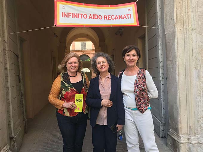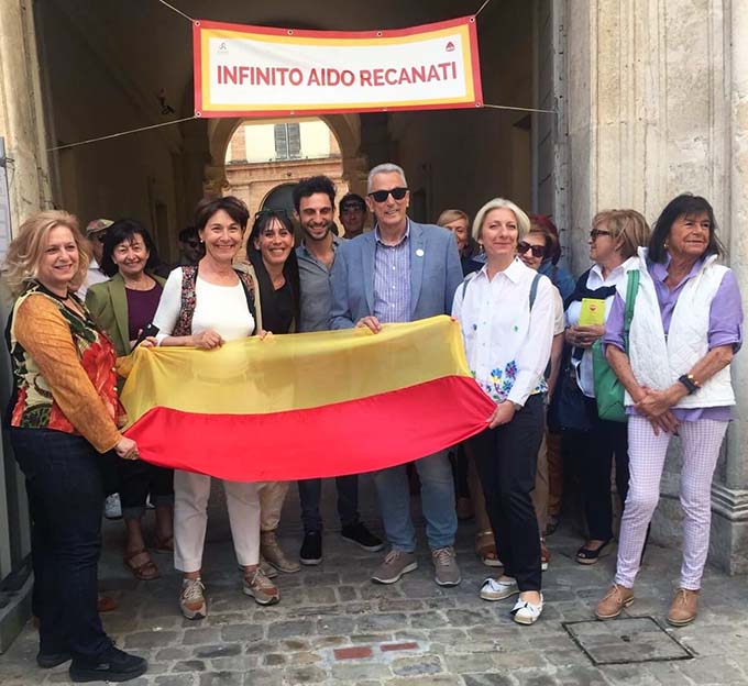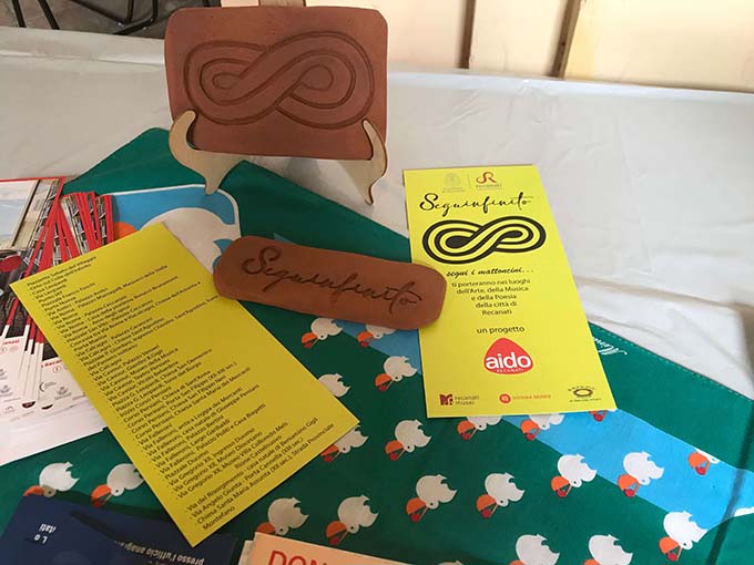 RECANATI – Con una bandiera giallo rossa, i colori di Recanati, sostenuta da molte mani, sabato 1 giugno presso il Museo Villa Colloredo Mels alla presenza del Sindaco Antonio Bravi, l’Assessora alle Culture Rita Soccio e la presidente provinciale Aido Loredana Piermattei, si è svolta l’inaugurazione del progetto Seguinfinito ideato dal gruppo Aido Recanati, un itinerario pedonale contrassegnato da piccoli mattoncini in gres color terracotta lavorati a mano dalla ceramista e presidente del gruppo Piera Marconi per indicare i luoghi d’interesse della città. Aido Recanati, l’Associazione per la donazione degli organi, con Seguinfinto vuole promuove la cultura della passeggiata per favorire la salute e garantire il benessere delle persone. Su ogni piastrella è scolpito il simbolo più antico dell’infinito, segno identitario della città leopardiana, che si trova nella chiesa di San Vittore delle Chiuse a Genga inciso nella pietra vicino alla porta sinistra dell’altare. I “sassolini d’infinito”, come li ha denominatila vicepresidente Nikla Cingolani, sono stati “seminati” lungo il selciato rispettando la direzione delle pietre e spesso inseriti nelle porzioni mancanti o dissestate della pavimentazionein modo da rendere il percorso meno monotono rispetto ad un tratto cadenzato e uniforme,con l’intento disuperare la prevedibilità e sviluppare sguardi più curiosi.Un divertimento non solo per i grandi, ma anche per più piccoli che, scovando i mattoncini, potranno fare la conta, prestare attenzione ai particolari costruttivi degli edifici, alla loro storia e a quella dei personaggi che li hanno vissuti. Il patrimonio architettonico di Recanati farà da sfondo alla passeggiata nella città storica che inizia dal Museo Civico e arriva a Casa Leopardi, o viceversa, fino a toccare l’antico rione Castelnuovo (qui le piastrelle saranno inserite dopo la chiusura dei vari cantieri).Il progetto artisticoè stato promosso dall’Amministrazione Comunale e realizzato dall’azienda Artedil di Albert Bandaj, specializzata in restauri, in collaborazione con l’area tecnica del Comune di Recanati.Durante la cerimonia sono state presentatele cartoline con il tratto “calpestabile” segnalato dalle rispettive vie o piazze, messe a disposizione dal Circuito Museale Infinito Recanati e reperibili nei vari punti informativi per cittadini e turisti.