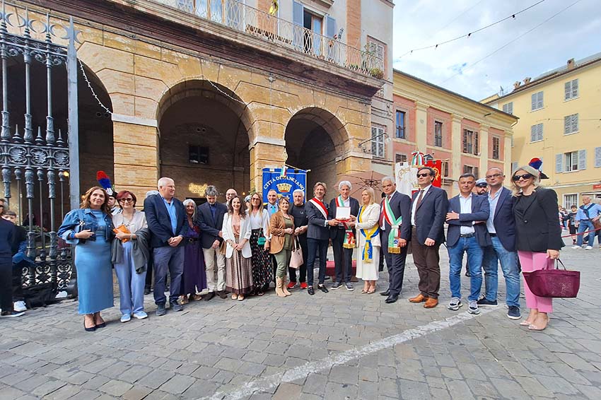 MACERATA – Grande partecipazione per i tre giorni di appuntamenti della terza edizione di “Città di Macerata in Festa” – organizzata dal Comune di Macerata in collaborazione con le associazioni del territorio e il Garante Regionale dei Diritti alla Persona – che si è svolta il 31 maggio e l’1 e 2 giugno ai Giardini Diaz. Molto sentita la cerimonia istituzionale che si è svolta il 1° giugno in piazza Annessione, alla presenza delle autorità civili, militari e religiose e delle Amministrazioni comunali di Macerata e Lanciano, durante la quale il sindaco Sandro Parcaroli e il presidente del Consiglio comunale Francesco Luciani hanno consegnato simbolicamente le chiavi alla città gemellata di Lanciano e, nello specifico, alla presidente del Consiglio comunale Gemma Sciarretta e al consigliere Donato Toro Santucci, rafforzando i valori e le reciproche intenzioni del patto di gemellaggio sottoscritto a giugno 2023.