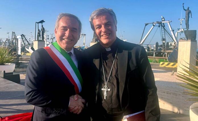 SAN BENEDETTO DEL TRONTO – È stata una domenica di festa per tutta la comunità cattolica di San Benedetto e non solo quella del 30 giugno. L’arcivescovo Gianpiero Palmieri, già capo della diocesi di Ascoli Piceno, ha infatti tenuto la sua prima messa ufficiale nella veste di guida della diocesi di San Benedetto del Tronto, Ripatransone e Montalto delle Marche, ma non prima di aver incontrato la comunità. L’Arcivescovo ha infatti fatto visita alla comunità di Monteprandone, prima di recarsi al Centro “Biancazzurro”, per incontrarne gli ospiti, e al porto cittadino, dove si è tenuto l’incontro con le autorità civili e militari del territorio. Il sindaco Antonio Spazzafumo ha accolto personalmente il nuovo vescovo, insieme al sottosegretario del Ministero dell’Economia e delle Finanze, on. Lucia Albano, al comandante della locale Capitaneria di Porto, C.F. Alessandra Di Maglio, e a Pietro Ricci, in veste di rappresentante della marineria sambenedettese.
