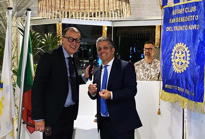 SAN BENEDETTO DEL TRONTO – Ettore Strappelli è il nuovo presidente del Rotary Club San Benedetto del Tronto Nord. Il tradizionale passaggio di consegne o, in gergo, “del martelletto”, tra il presidente uscente, in questo caso Dario Chiaretti, e il nuovo, si è svolto nella serata di giovedì scorso, 27 giugno, nell’elegante cornice dello Chalet “Medusa” di San Benedetto del Tronto, alla presenza dei soci e delle maggiori autorità rotariane. Presenti, tra gli altri, oltre al Sindaco Antonio Spazzafumo e alla consigliera Sabrina Merli in rappresentanza della Città, i Presidenti Rotary Massimo Colletta, Giuseppe Gabrielli e Giuseppe Formentini, rispettivamente presidenti dei Club Ascoli Piceno, Hatriaticum Piceno e presidente uscente del Club San Benedetto del Tronto, e, ancora, Lucia Villa e Anna Giuseppina Mandolini, rispettivamente Presidentessa e Presidentessa uscente del locale Club Inner Wheel nonché l’assistente del Governatore Paolo Petronio. Una serata piacevole all’insegna dell’amicizia che è stata comunque l’occasione per ricordare tutte le importanti iniziative portate avanti nell’anno rotariano appena trascorso, tra le tante una speciale menzione alla prosecuzione del progetto volto a dotare il nostro Territorio di numerose postazioni “salvavita” attrezzate con defibrillatori semiautomatici, nonché per presentare le iniziative che caratterizzeranno l’anno appena inaugurato, un anno in cui il “servizio” cui lo spirito Rotary è votato avrà un respiro internazionale. A conclusione dell’incontro i soci hanno potuto esprimere compiacimento e gioia per la presenza della consigliera e past- president Anna Rosa Romano, che per ragioni personali non ha partecipato alle conviviali degli ultimi mesi, omaggiandola con un raffinato bouquet floreale.