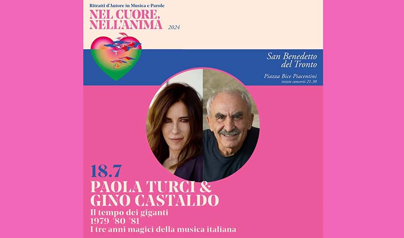 SAN BENEDETTO DEL TRONTO – Si rinnova a San Benedetto del Tronto l’atteso appuntamento con la settima edizione di “Nel cuore, nell’anima. Ritratti d’autore in musica e parole”, rassegna promossa dall’Amat con il contributo del Comune di San Benedetto del Tronto, della Regione Marche e del Ministero della Cultura e con il sostegno di BIM Tronto. Tre gli appuntamenti in programma dal 18 luglio all’8 agosto in Piazza Bice Piacentini per un omaggio ai grandi interpreti e autori della canzone italiana. L’inaugurazione giovedì 18 luglio è con Gino Castaldo e Paola Turci sulle orme dei cantautori protagonisti del Rinascimento della canzone d’autore: da Lucio Dalla a Fabrizio De André, da Lucio Battisti a Franco Battiato, un viaggio straordinario nel mondo degli artisti più iconici rimasti nel cuore e nell’immaginario del paese.