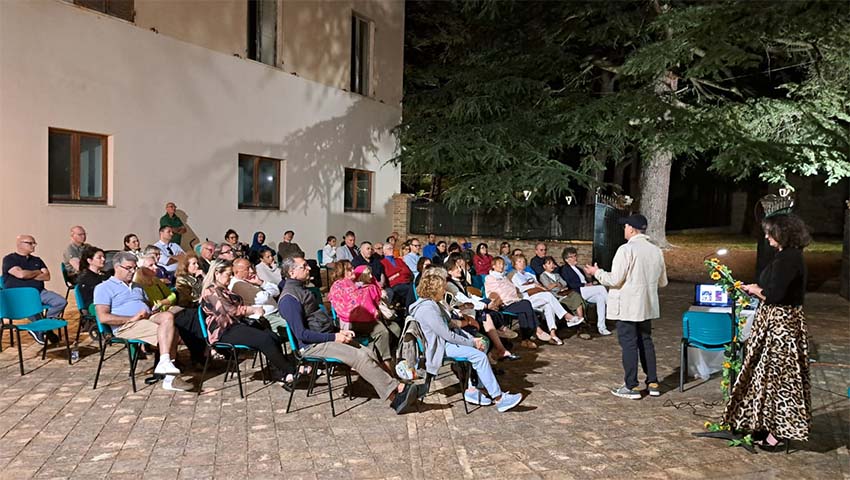 RIPATRANSONE – Grande partecipazione di pubblico per l’evento “Chagall: una vita per l’arte. Tra sogno e realtà”, a cura di Filippo Massacci, organizzato dall’associazione culturale Pelasgo 968 di Grottammare, nella splendida location del Chiostro del Museo Vescovile di Ripatransone. Dirigente di azienda, nonchè grande appassionato di letteratura, storia e arte, Massacci ama organizzare e promuovere eventi culturali, oltre a far parte della giuria del Premio letterario Città di Grottammare. La serata è stata impreziosita dalle letture di Mascia Lanciotti, attrice di laboratorio Spaziarte (teatro sperimentale improvvisato e non) presentatrice ed interprete improvvisata teatrale e dialettale, che ha letto alcuni brani tratti dall’autobiografia di Chagall: La mia vita, alcune sue poesie e brani tratti dagli scritti di Bella,il grande amore della sua vita; Come fiamma che brucia. Io, la mia vita e Marc Chagall. Tra gli altri era presente la dottoressa Paola Di Girolami, direttrice dei Musei Sistini del Piceno, i vertici dell’associazione Pelasgo 968, il presidente Gian Mario Cherubini e il