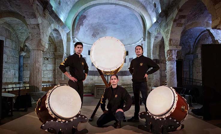 Concerto all’alba domenica 18 agosto con i Tamburi sacri giapponesi, i “Munedaiko” trio composto da Mugen, Naomitsu e Tokinari Yahiro, tamburi “Taiko”, flauti e danza –