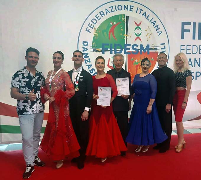 SPINETOLI – La scuola di ballo Pol.ita Dance School di Pagliare dei maestri Eros Sciamanna e Anna Jaglinska-Sciamanna brilla ai recenti campionati italiani Fidesm (Federazione Italiana Danza Sportiva e Sport Musicali) unica Federazione riconosciuta dal Coni e dalla World Dance Sport Federation, svoltisi a Rimini. Dieci i podi totali conquistati dalla società della vallata del Tronto: 2 ori, 4 argenti e 4 bronzi, oltre a ottimi piazzamenti che fanno di questa realtà una delle più importanti della provincia, che ha preso parte alla competizione tricolore con otto coppie di danze standard. Sul tetto d’Italia, Erica Di Addezio e Manuel Sciamanna nella categoria 19/34 Anni Classe B1 e Cristina Nucci e Danilo Amurri nella 35/44 anni classe C nel liscio unificato. Vice campioni d’Italia, Mirella Marrozzini e Nazzareno Speca nella 70/oltre anni classe A2, Rebecca Carnicelli classe AS nella Aerial Dance, Danilo Amurri e Cristina 35/44 anni classe C, Daniele Emanuele e Rosa Vergalito 70/74 anni Classe A, nelle Danze standard. Terzo posto per Geremia Salvatelli e Teresa Martinelli 61/64 anni classe B3, Manuel ed Erica Di Addezio 19/34 anni Classe B1 nelle danze standard e nella classe B1, nella combinata Danze Standard e Danze Latino Americane. Sul terzo gradino del podio anche Martina Susino ed Emiliano Ciarabellini 55/60 Classe A1 nel liscio unificato. Hanno sfiorato il podio  Silvano Mariotti e Addina Rita Orsini 70/74 anni classe B3, nelle danze standard e Teresa Martinelli e Geremia Salvatelli 61/64 anni classe C nel liscio unificato. Buoni piazzamenti infine per Addina Rita Orsini e Silvano Mariotti 70/oltre anni classe B2 e per Enrico Pierangeli e Maria Grazia Sabbatini 65/69 anni classe B1. La scuola di ballo Pol.ita Dance School opera nella sede principale a Pagliare del Tronto e presso la struttura Danzarte e presso il Baladi Discovillage di Torre San Patrizio.