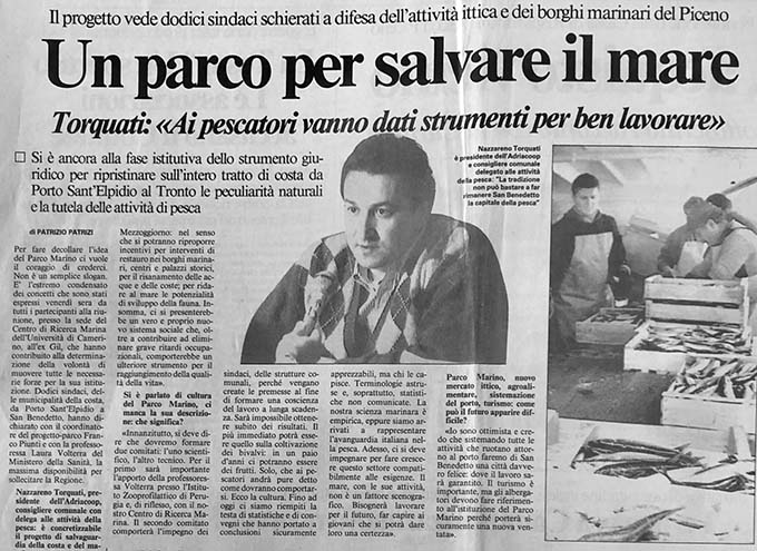 «Un vero vulcano di proposte e di progetti di grande visione, un costante pungolo critico delle Istituzioni. – continua Rossi – Indomabile anche di fronte alle sempre maggiori difficoltà di permeare di questa necessaria “visione di futuro” una politica in declino, sempre più piegata sulla quotidianità e sul localismo.  Non è un caso che proprio lui, uomo di mare di grande esperienza, sia stato oltre trent’anni orsono tra i promotori del progetto del Parco Marino del Piceno e fondatore due anni orsono della nostra associazione. Un’associazione di cui sino alla fine è stato, oltre che dirigente, il più solido e riconosciuto punto di riferimento, capace di indicare percorsi e proposte progettuali per tenere insieme la inderogabile necessità di proteggere la biodiversità marina con l’indispensabile valorizzazione della pesca».