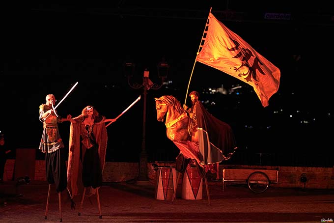 CASTIGNANO – Un enorme afflusso di pubblico ha riempito le vie e le piazze del millenario borgo di Castignano, per ammirare le decine di spettacoli che si sono ripetuti durante le ore serali, in un’atmosfera unica e suggestiva. Spettacoli di fuoco, cartomanti e giocolieri, danzatrici e musici, monaci Templari e carcerati, in un’ambientazione sempre più curata nei minimi dettagli. E poi ancora taverne con ricette e cibi per tutti i gusti, mercatini, mostre e giochi: dietro ogni rua, un’attrazione per grandi e piccini. Tra le novità dell’attuale dizione del festival, da menzionare in particolare la colonna sonora “Sigillum” nell’album “Templaria” dedicato appunto alla rievocazione; la partnership con il birrificio il Mastio per la produzione della birra, anch’essa rinominata Templaria, presente in un tutto il circuito; infine, l’organizzazione di visite guidate per i luoghi più caratteristici del borgo che si effettueranno con inizio alle 18,30 previa prenotazione. Completano le novità, la sempre maggiore attenzione alla tecnologia ed i contenuti multimediali, con un web-site (www.templaria.it) rinnovato e ricco di informazioni, mappe interattive, e canali social in cui ricercare e trovare tutte le news e continui aggiornamenti (www.facebook.com/TemplariaFestival – www.instagram.com/templariafestival). Gli imprevisti e le incertezze dovuti al meteo non hanno scalfito la tenacia e la voglia dei Castignanesi di portare avanti questa ultradecennale rievocazione medievale, che ha ormai raggiunto livelli di apprezzamento e notorietà su base nazionale. Castignano, fino al 21 agosto, è ancora pronto ad accogliere tutti per le sue mitiche Notti da Medioevo.