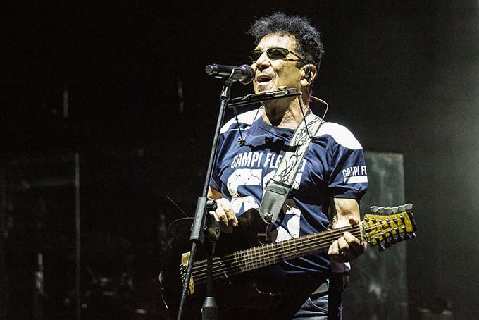 «Sono nato a Napoli, anzi a Bagnoli, in Viale Campi Flegrei 55, un numero che mi piace e che nella smorfia napoletana simboleggia la musica» ha detto Bennato sulle note di “A Napoli 55 è ‘a musica” confluita in una lunga ed esaltante jam session dei bravissimi musicisti che hanno offerto anche anche i brani “Shine On You Crazy Diamond” e “Another Brick in the Wall ” dei Pink Floyd. In un ritmo sempre crescente, il gigante del rock italiano, ha proseguito con una lunga scaletta dei suoi brani del passato e di quelli più recenti tra cui “Rinnegato”, “Pronti a salpare” “Io vorrei che per te”, “La luna” , “Cantautore”, “Le ragazze fanno grandi sogni” “Lo zio fantastico”, “A cosa serve la guerra” fino alla magia dell’ “ L’isola che non c’è”, trascinando il pubblico in canti e balli nel tripudio finale con la sua hit per eccellenza “Il rock di Capitan Uncino”. Tra i bis oltre a “Italiani” ha offerto “La chitarra” dove l’artista partenopeo ha raccontato dell’amore verso il suo primo strumento musicale, una chitarra costruita proprio a Recanati dalla celebre azienda Eko.