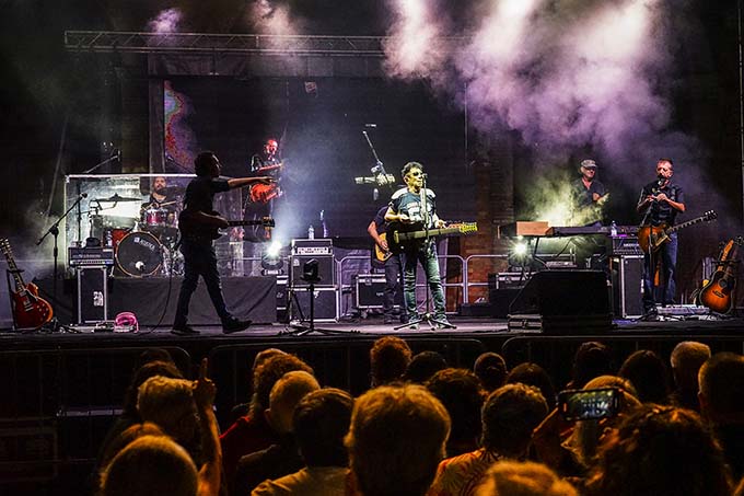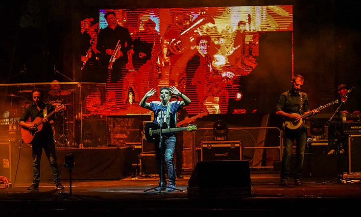 L’artista, con i suoi immancabili occhiali da sole, l’atteggiamento da eterno ragazzo, la chitarra e l’armonica a bocca, sulle note del brano “La torre di Babele” si è unito alla sua storica e strepitosa super band, la BeBand, composta da Roberto Perrone alla batteria, Arduino Lopez al basso, Raffaele Lopez alle tastiere, Gennaro Porcelli e Giuseppe Scarpato alle chitarre, musicisti straordinari che hanno offerto virtuosismi di grande intensità. Un memorabile concerto di oltre due intense ore che ha infiammato i cuori e gli animi delle migliaia di persone presenti, di tutte le età, contagiati dalla grande energia di Edoardo Bennato nella gremitissima piazza Giacomo Leopardi, allestita a forma di arena sotto le stelle. Bennato ha offerto generosamente i suoi grandi successi, tra cui “Mangiafuoco”, “Mastro Geppetto ” e “Quando sarai grande” trasportando il pubblico in un vortice di vibrazioni ed emozioni.