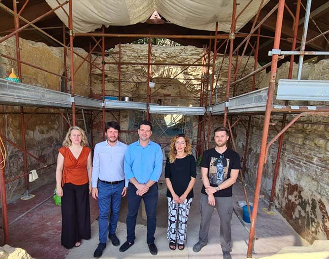 CUPRA MARITTIMA – Si è tenuto nei giorni scorsi, presso il Ninfeo di Cupra Marittima un incontro che ha visto coinvolti la Soprintendenza Archeologia, Belle Arti e Paesaggio delle provincie di Ascoli Piceno, Fermo e Macerata, il Sindaco di Cupra Marittima Alessio Piersimoni, l’Assessore alla Cultura Daniela Luciani e la Consigliera ai Beni Archeologici Eliana Ameli per supervisionare l’avanzamento dei lavori di restauro dell’affresco del Ninfeo, ad opera della restauratrice Maria Letizia Vallesi. «I lavori, iniziati un mese fa, rappresentano un’opera attesa e molto importante – afferma il sindaco Piersimoni – che avevamo sollecitato negli anni scorsi come Amministrazione, in accordo con la Soprintendenza per preservare e ridare vita agli affreschi che abbiamo al Ninfeo».Questo restauro, finanziato e diretto dalla Soprintendenza, non solo rappresenta un passo fondamentale per la conservazione del patrimonio storico e artistico del comune, ma è anche segno tangibile dell’impegno e desiderio congiunto delle autorità locali e regionali per la valorizzazione dei beni culturali. È in programma una giornata di “restauro aperto”che si terrà entro il mese di agosto, in collaborazione con la Soprintendenza, dove sarà possibile vedere da vicino il lavoro della restauratrice e l’affresco in veste restaurata nei suoi colori originali. Questo evento è stato pensato per coinvolgere la comunità e sensibilizzare i cittadini sull’importanza della conservazione del nostro patrimonio culturale. Durante la giornata saranno offerte spiegazioni del processo di restauro, permettendo di vivere un’opportunità unica per apprezzare il valore storico e artistico dell’opera.