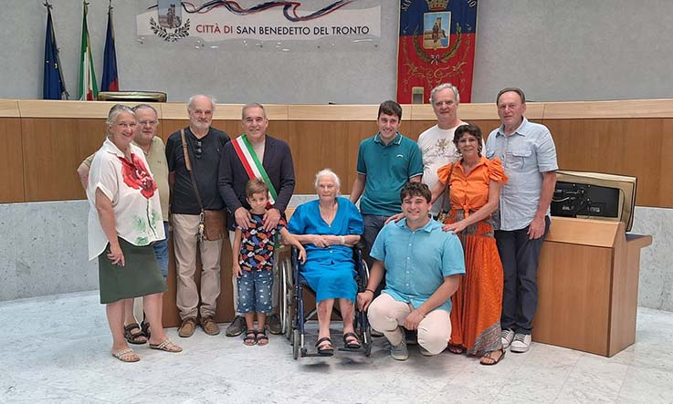 SAN BENEDETTO DEL TRONTO – Il sindaco Antonio Spazzafumo ha ricevuto in visita la signora Rosa Burrasca in occasione del suo 100° compleanno. Rosa Burrasca è nata a San Benedetto il 6 agosto 1924, nella “via di Boccabianca”, da madre e padre friulani trasferitisi a San Benedetto dopo la Prima Guerra Mondiale. Anche se da circa 60 anni vive a Faenza, in Emilia Romagna, mantiene tutt’oggi un fortissimo legame con la terra natia, della quale non smette mai di parlare e di cui serba gelosamente ogni ricordo. La lunga vita della signora Burrasca ha infatti avuto una costante: la sua sambenedettesità, alla quale non ha mai rinunciato. Dal debole per le battute in dialetto sambenedettese, ai racconti e ai ricordi della giovinezza trascorsa in città, San Benedetto ricopre un ruolo di primo piano nel cuore di Rosa che, nella sua lunga vita, ha visto avvicendarsi otto Papi, ventitré Olimpiadi e il referendum, a cui partecipò, per decidere il futuro dell’Italia tra Monarchia e Repubblica. Alla signora Rosa, che tanto ama la sua San Benedetto da esserci tornata per festeggiare i suoi 100 anni, la Città di San Benedetto augura tutta la felicità del mondo.
