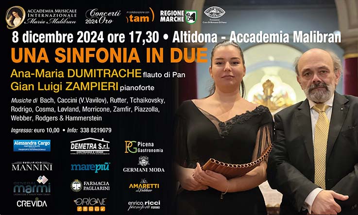 «Sarà un concerto davvero speciale, straordinario – sottolinea Rossella Marcantoni, direttore artistico dell’Accademia Malibran; Accademia che sta occupando un suo spazio sempre più prestigioso  sul territorio nazionale e oltre – non celebra, , solo la bellezza della musica, ma anche la magia di un momento di condivisione e riflessione. La scelta del flauto di Pan, suonato dall’artista rumena Ana-Maria Dumitrache, conferisce un tocco di originalità e fascino a questa serata di melodie incantevoli. Si tratta anche di un’occasione imperdibile per ascoltare dal vivo il dolce e melodioso suono del flauto di Pan, strumento di origine antichissima e simbolo di armonia senza tempo. Il flauto di Pan ha una storia ricca e si è evoluto in diverse culture e luoghi del mondo, dal Perù alla Cina, fino ad arrivare in Romania. La sua abilità e carisma sul palco sapranno catturare il cuore di ogni spettatore, trasportandolo in un viaggio sonoro che spazia da composizioni classiche a brani contemporanei».