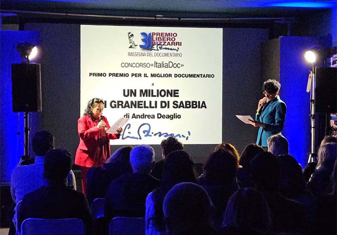 SAN BENEDETTO DEL TRONTO – La rassegna autunnale del XXXI Premio Bizzarri si conclude con una serata dalle forti emozioni: in una Sala del Museo del Mare gremita sono stati svelati i documentari vincitori. La giuria del concorso ItaliaDoc – coordinata dalla produttrice Gioia Avvantaggiato e formata da Markus Nikel, International advisor di Rai Documentari, dall’autore televisivo Vittorio Rizzo, dal regista Luigi Maria Perotti e dalla regista e produttrice Sara Ristori – ha consegnato il Premio Miglior Documentario a “Un milione di granelli di sabbia” di Andrea Deaglio con la seguente motivazione: “Con grande sensibilità e precisione narrativa, “Un milione di granelli di sabbia” di Andrea Deaglio ci apre lo sguardo al racconto del trauma post-bellico; ci mostra come la violenza subita continui a torturare le vittime anche quando la guerra stessa sembra finita, quando non appare più nelle news, quando le vittime sono già state dimenticate. Seguendo il difficile lavoro di una terapeuta che al trattamento delle vittime di trauma ha dedicato la sua vita, ne emerge una sorta di film anti-guerra forse insolito, e quindi ancora più importante. Il film ha anche il merito di aprire uno spiraglio di speranza, particolarmente importante in tempi come quelli che viviamo”. A ritirare il Premio la protagonista del documentario Eva Pattis Zoja.