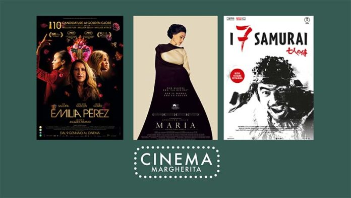 CUPRA MARITTIMA – Con “Emilia Pérez”, il cinema di Jacques Audiard cambia pelle. Anche se il cuore profondo delle sue storie sembra resistere intatto. Perché si tratta ancora una volta di un affare di ruggine e ossa, di bande criminali, di leggi del cuore e del ferro, di sangue sparso tra le profezie della metropoli. Ma stavolta tutto è innestato in una forma musical sorprendente. Che si nutre degli umori di una Città del Messico caotica, densa, delirante, vita sospesa a un passo dall’inferno. Del resto, questa è una storia di cambiamenti. Emilia Pérez è la nuova identità di uno spietato boss del narcotraffico, Manitas, che per anni ha coltivato il desiderio di diventare donna, andando incontro alla sua vera natura. Ma la faccenda è delicata, non solo per questioni chirurgiche. Si tratta di cambiare radicalmente vita, dopo aver costruito un impero fondato sulla droga e sul terrore. E perciò, per gestire in gran segreto il passaggio, Manitas si affida a una giovane avvocatessa, Rita, che sogna un’affermazione dopo anni di gavetta. Quando, anni dopo, Emilia ricontatta Rita, per forza di cose tra le due donne si stabilisce un legame speciale. Questo è il film più premiato della stagione: due premi a Cannes, quattro ai Golden Golbe. Un film impossibile da definire, si può solo vivere. Seconda settimana per “Maria” di Pablo Larrain. L’intelligenza del regista sta nel saper utilizzare un pezzetto, un frammento, un elemento forse periferico di una storia come quella dell’immensa artista Maria Callas, per raccontare il tutto, compreso l’invisibile e l’incomprensibile. Come la straordinaria e irripetibile unicità di Maria Callas, il fascino senza tempo e infinito dell’opera lirica: l’unica arte ancora capace di dare forma terrena alle divinità. Si apre a gennaio la retrospettiva su Akira Kurosawa che vedrà tornare sugli schermi 5 principali capolavori del regista giapponese restaurati e in versione originale. Martedì 14 gennaio ore 21 il capolavoro “I sette samurai” del 1954 opera più famosa in occidente ma mai uscita nella sua versione integrale. Da non perdere.