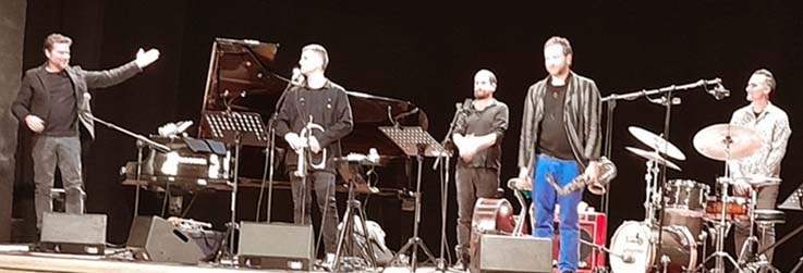Fa strano pensare l’Emiliano D’Auria Quartet fuori di casa sua – il Cotton Jazz /Lab di Ascoli Piceno – quando di colpo ce lo ritroviamo al Teatro Concordia col loro album “FIRST RAIN” registrato tra i fiordi di Norvegia. Strana forse (per noi ragazzi scimmia del jazz) anche l’inconsueta ambientazione-teatro, affezionati a quel minimale palcoscenico di tralicci del Cotton che pare costruito col meccano. Senza sipario di velluto rosso. Però intanto, prima del concerto, ci rassicura l’ordine teutonico (quasi maniacale) dell’ambaradan di strumenti e apparecchiature sul grande palco.