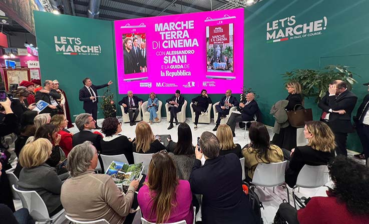 Al centro dell’evento che ha visto la partecipazione del folto pubblico della Fiera, la presentazione in anteprima della Guida di Repubblica “Marche e il Cinema”, un volume che esplora il legame tra la Regione e il grande schermo, raccontando set iconici, storie di grandi personaggi e di produzioni, in percorsi di scoperta tra cultura, paesaggio ed enogastronomia. «Alla BIT celebriamo un momento significativo per il cinema nelle Marche. – Ha detto Andrea Agostini Presidente di Fondazione Marche Cultura – Film Commission – Con la presenza di Siani che ha scelto la nostra Regione per il suo ultimo film, e con la presentazione della Guida di Repubblica “Marche e il Cinema”, diamo valore a un percorso che ha portato le Marche sempre più sotto i riflettori del grande schermo. Negli ultimi due anni, grazie a numerose produzioni, abbiamo raccontato il territorio attraverso il cinema, valorizzando non solo le città più conosciute ma anche borghi e paesaggi meno esplorati. Guardando al 2025, vogliamo ampliare ancora di più questa rete, consolidando il legame tra cinema, turismo e identità culturale, per fare delle Marche un set cinematografico sempre più riconosciuto e attrattivo».