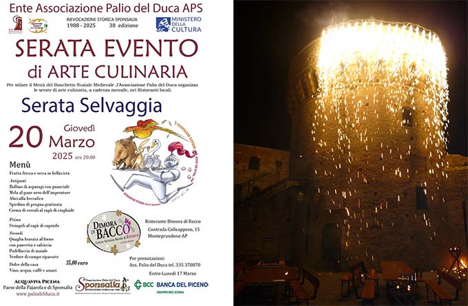 L’Ente Palio del Duca ricorda che la terza serata culinaria “Serata selvaggia”si svolgerà giovedì 20 marzo –