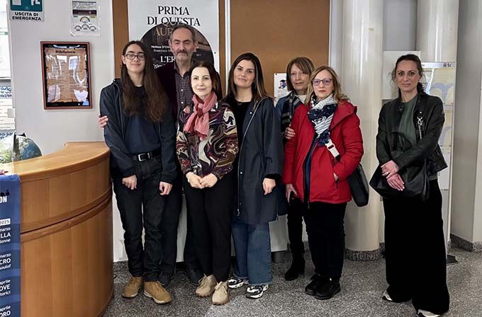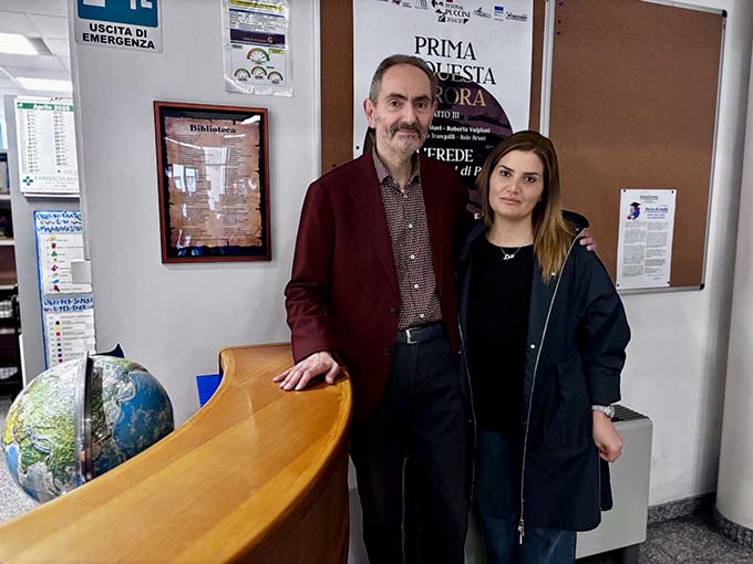 SAN BENEDETTO DEL TRONTO – Francesco Tranquilli dedica una poesia alla Biblioteca comunale, composta a fine settembre proprio negli ambienti della struttura. In segno di gratitudine per l’omaggio del vulcanico professore, che è anche scrittore, regista, autore teatrale e presidente dell’associazione multiculturale “VisionAria”, la sua poesia intitolata appunto “Biblioteca” e composta in versione bilingue in italiano e spagnolo, è stata incorniciata e appesa al piano terra della Biblioteca comunale “Giuseppe Lesca” accanto al bancone del reference, nel punto di maggior contatto e visibilità da parte degli utenti. La cerimonia di “scoprimento” si è svolta nella mattinata di giovedì 17 aprile, alla presenza dell’assessore alla Cultura Lia Sebastiani, ed è stata l’occasione per declamare la poesia, in italiano a cura di Alessandro Tranquilli, figlio dell’autore, e in spagnolo da parte di Valentina Pacetti, insegnante e associata di “VisionAria”. Presente anche Domenica “Mimma” Tranquilli, sorella di Francesco e membro dell’associazione “I luoghi della scrittura”. La poesia di Tranquilli fa parte della raccolta “Escucha/Ascolto (Diàlogo)” ed è una metafora dell’esistenza di qualsiasi lettore: ogni scaffale ne simboleggia una parte di vita dove i libri non letti sono le esperienze ancora inespresse e quelli letti sono i momenti che più lo hanno segnato. «Non siamo noi a leggere i libri – commenta Tranquilli – ma sono i libri a leggere noi». Quella della composizione bilingue è del resto una scelta stilistica grazie alla quale l’italiano e lo spagnolo si incontrano in un equilibrio che valorizza le sfumature sonore e semantiche di entrambe le lingue.