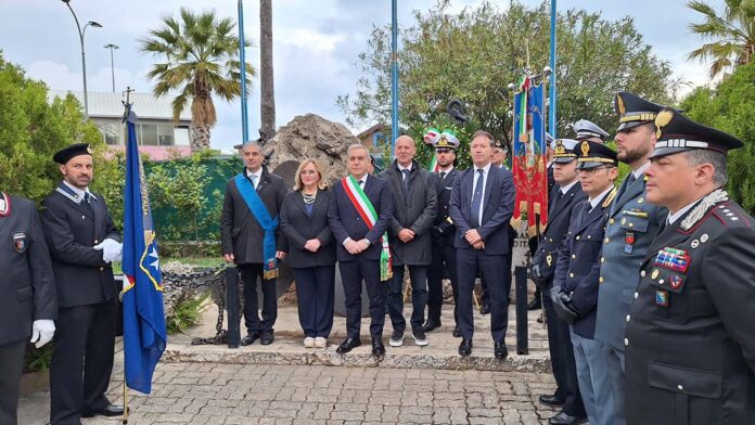 SAN BENEDETTO DEL TRONTO – La Città di San Benedetto ha celebrato l’80° anniversario della Festa della Liberazione con la tradizionale cerimonia istituzionale nei luoghi cittadini ove si ergono i tre monumenti che la città ha dedicato ai suoi caduti nei conflitti mondiali e nella lotta per restituire libertà e democrazia all’Italia. Nella tarda mattinata di venerdì 25 aprile, autorità civili e militari si sono radunate in largo Luigi Onorati dove sono state deposte due corone d’alloro, una dinanzi al monumento ai Caduti della Prima Guerra Mondiale, l’altra ai piedi del monumento ai Caduti per la Libertà che ricorda i caduti della Resistenza. A porgere omaggio a nome di tutta la comunità il sindaco Antonio Spazzafumo insieme al sottosegretario al Ministero dell’Economia e delle Finanze on. Lucia Albano e al Capitano di Corvetta Francesco Sangermano della locale Capitaneria di Porto, massima autorità militare presente alla cerimonia.