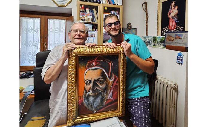 GROTTAMMARE – In occasione della riapertura della cinquecentesca chiesa di Santa Lucia di Grottammare alta, l’artista Donato Gentili ha voluto donare un suo dipinto raffigurante il famoso Papa Sisto V. La donazione è avvenuta pochi giorni fa tramite il parroco dell’ unità pastorale Mons. Federico Pompei. Il dipinto è stato posto sopra la porta che conduce dall’edificio sacro alla sagrestia. «Ho voluto realizzare e donare questa mia opera che ritrae il più famoso grottammarese al mondo, Felice Peretti, salito al soglio pontificio con il nome di Sisto V il 24 aprile 1585. – spiega l’artista – Mi sono accorto che mancava una sua effige che lo rappresentasse ufficialmente proprio nei luoghi da lui scelti per erigere la propria chiesa dedicata a Santa Lucia, Santa che viene celebrata il 13 dicembre, giorno della nascita di Sisto V. Con questa opera ho voluto riportare a casa il grande Pontefice che in soli cinque anni di pontificato ha rivoluzionato in modo permanente Roma e il mondo. Ho voluto realizzare il ritratto di Papa Sisto V con un espediente tecnico che faccia in modo che ovunque ci si sposti all’interno dell’edificio sacro si è seguiti dal suo sguardo. Pertanto, da adesso in poi, se entrerete nella chiesa di Santa Lucia, lo sguardo magnetico e sornione del Santo Padre si poserà su ognuno di voi, il “Papa tosto” vi guarda!». Ricordiamo che dopo anni di chiusura la chiesa verrà finalmente riaperta nei fine settimana di luglio e agosto dalle ore 17 alle 19 e dalle ore 21 alle 22.30, grazie all’ impegno di Mons. Federico Pompei e ai vari volontari denominati “Angeli custodi di Santa Lucia” che si stanno adoperando a riguardo.