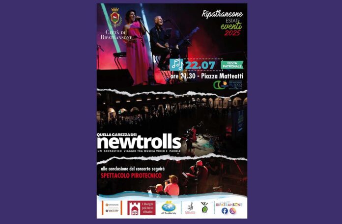 RIPATRANSONE – Martedì 22 luglio alle ore 21.30 in Piazza Matteotti a Ripatransone, andrà in scena “Quella carezza dei New Trolls”. Un viaggio musicale emozionante che ripercorre i trent’anni più significativi della leggendaria band italiana “New Trolls”, dalle origini nel 1967 fino al 1997. Uno spettacolo unico che intreccia la straordinaria evoluzione musicale dei New Trolls con i momenti più significativi della storia della musica italiana. Dai tumulti del ‘68 fino alla trasformazione culturale degli anni ‘90. Trent’anni di musica e cambiamenti sociali, con brani celebri e aneddoti storici. Lo spettacolo racconta l’evoluzione artistica del gruppo attraverso musica, storie inedite e contenuti multimediali esclusivi, tra cui video storici e immagini iconiche. Non solo un tributo alla musica dei New Trolls, ma anche una riflessione sul legame tra arte e società, offrendo così al pubblico un’esperienza immersiva che unisce musica, storia e memoria collettiva. «Una cover band che non ha nulla da invidiare agli originali, nata da un’idea del poliedrico Stefano Romani e subito condivisa dalla Pro Loco di Grottammare l’Associazione Lido degli Aranci, specializzata a scoprire e incoraggiare i talenti locali. – affermano gli organizzatori – Un ringraziamento al sindaco Alessandro Lucciarini De Vincenzi e a tutta l’Amministrazione comunale di Ripatransone». Il concerto farà da preludio ai fuochi pirotecnici per la festa patronale dedicata a Santa Maria Maddalena, festa cittadina molto sentita e seguita ogni anno.