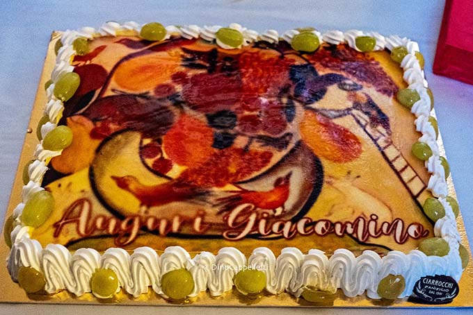 Tra  gli interventi, a chiudere, molto applaudito quello della poetessa Eva Caprotti che ha letto una poesia di Baudelaire, “Anime Erranti”. L’evento svoltosi il giorno della nascita di Pomili si è concluso, come tutte le feste che si rispettano, con una mega torta di compleanno  del forno Ciarrocchi Enrico, un opera d’arte d’alta pasticceria che riproduceva una “Natura morta con uva” del Tarpato e le bollicine Velenosi. Hanno preso la parola alla presentazione del libro il sindaco Alessandro Rocchi, il vicesindaco Lorenzo RossiGiuseppe Gabrielli dell’associazione Pelasgo 968; Donatella Simonetti, presidente Banca di Credito Cooperativo di Ripatransone che ha contribuito alla pubblicazione insieme alla Banca del Piceno. Il libro è in vendita presso l’edicola di piazza Fazzini e la tabaccheria Virgili di via Ballestra.
