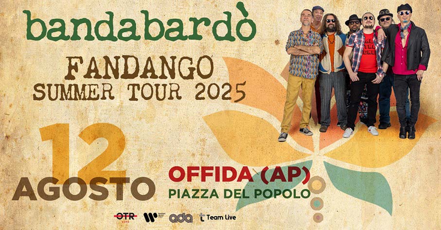 OFFIDA – Offida si prepara a vivere una serata all’insegna della musica e dell’energia. Martedì 12 agosto, alle ore 21:30, Piazza del Popolo ospiterà il concerto gratuito della Bandabardò, tappa del travolgente Fandango Summer Tour. Considerata una delle band più amate e longeve della scena musicale italiana, la Bandabardò torna a Offida con il suo mix inconfondibile di folk, rock e poesia, pronta a trasformare la piazza in una festa collettiva. Il tour segue la pubblicazione del nuovo album di inediti, “Fandango”, uscito lo scorso 28 marzo per Otrlive e distribuito da Ada/Warner Music Italy: un disco che conferma la vitalità e la forza espressiva della band, capace di coinvolgere generazioni diverse grazie a uno spirito live travolgente. Guidati da Finaz, i musicisti – Orla, Bachi, Nuto, Pacio, Ramon e Cantax – porteranno sul palco i grandi classici che hanno fatto la storia della Bandabardò, insieme a nuovi brani e piccole gemme del repertorio, per un’esperienza da vivere tutta d’un fiato. L’ingresso è gratuito.