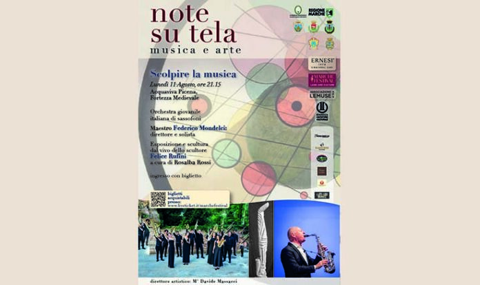 ACQUAVIVA PICENA – Nella suggestiva cornice della Fortezza Medievale di Acquaviva Picena, lunedì 11 agosto alle ore 21.15, il Comune ospita “Scolpire la Musica”, l’evento centrale della rassegna “Note su Tela”, organizzato da Endeca Agitatore Culturale con il patrocinio del Consiglio Regionale delle Marche, presieduto da Dino Latini. La direzione artistica è affidata a Rosalba Rossi. Protagonista della serata sarà Federico Mondelci, sassofonista di fama internazionale, che si esibirà in una duplice veste: come solista e come direttore della Orchestra Italiana di Sassofoni, formazione di eccellenza composta da musicisti provenienti da tutta Italia. Il programma proporrà un viaggio musicale tra epoche e stili differenti, mettendo in luce l’ampiezza espressiva del sassofono. Ad affiancare la musica, la componente visiva sarà curata dallo scultore Felice Rufini, noto per le sue opere ispirate al mondo sonoro. Durante il concerto, l’artista realizzerà un’opera in estemporanea, creando un dialogo vivo tra gesto plastico e performance musicale. «L’evento – dichiarano Franco Mercuri e Rosalba Rossi, fondatori di Endeca Agitatore Culturale, associazione Ets sempre più protagonista propositiva nel panorama degli eventi culturali di livello sul territorio – mira a valorizzare il patrimonio storico artistico marchigiano, con un’esperienza immersiva e multidisciplinare che unisce due linguaggi universali: le note e la tela. La rassegna, ideata dal pianista Davide Massacci – attualmente impegnato in Togo in progetti musicali e umanitari – propone cinque appuntamenti, tutti accomunati dalla ricerca di un dialogo creativo tra musica e arti visive».