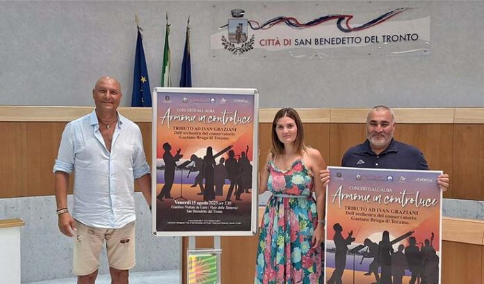 SAN BENEDETTO DEL TRONTO – Venerdì 15 agosto, alle ore 5:30, torna il concerto all’alba di Ferragosto di “Armonie in controluce”. La tradizionale esibizione musicale che si tiene ogni anno al giardino “Nuttate de Lune”, lungo via delle Tamerici, vedrà quest’anno protagonista un ensemble del Conservatorio “Gaetano Braga” di Teramo, impegnata in un emozionante tributo a Ivan Graziani, con la voce di Linda Valori. L’evento, organizzato in collaborazione da Seventeen Eventi e dall’Istituzione Musicale “Antonio Vivaldi” di San Benedetto e con la direzione artistica di Federico Paci, è gratuito e aperto a tutti.