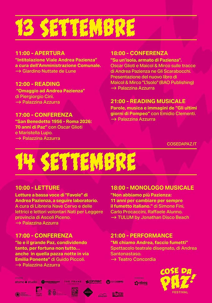 Home San Benedetto del Tronto omaggia Andrea Pazienza: arriva il festival “Cose da Paz!” 2025-09-03_programma cose da paz