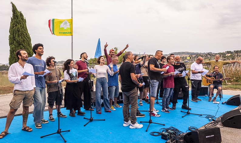 «Questa è la serata finale di una storia iniziata a marzo, passata dallo Sferisterio di Macerata ma che si è svolta prevalentemente qui dentro, con la musica, con Musicultura. – ha detto il Garante regionale dei diritti della persona Giancarlo Giulianelli – Lo scopo non è solo quello di portare la vita esterna nella struttura carceraria ma anche quello di far capire a chi è fuori che chi è qui dentro può e deve avere un futuro, una nuova possibilità di vita. Il ringraziamento va a Musicultura e a tutti i vincitori del concorso che hanno deciso di partecipare a questa memorabile giornata di allegria e condivisione». Gran finale con tutti i vincitori di Musicultura che insieme ai venticinque detenuti della speciale giuria del Festival hanno intonato la canzone di Lucio Dalla che ha dato il nome al progetto, accompagnati dalla chitarra di Ezio Nannipieri. «Una bellissima festa, gioiosa, armoniosa, commovente. – ha commentato il direttore artistico di Musicultura Ezio Nannipieri – . Si è percepita una fusione sincera di energie altrettanto sincere. Gli invitati credo abbiano toccato con mano non solo come iniziative del genere portino conforto a chi vive in condizione di privazione della libertà, ma anche quanto chi sta fuori dal carcere possa umanamente arricchirsi dall’incontro con i detenuti e con l’acquisire consapevolezza della realtà che si ritrovano a vivere».