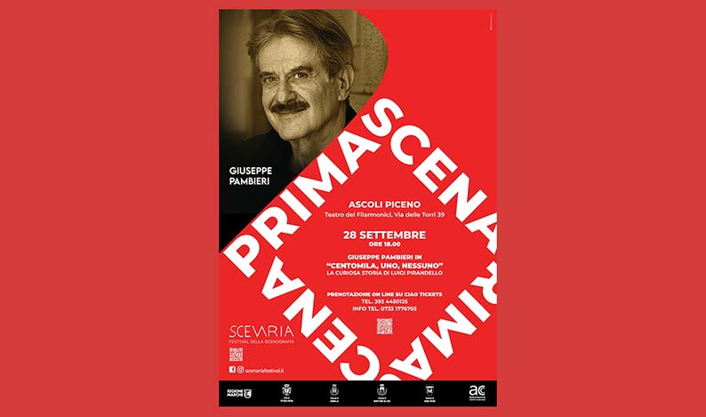 ASCOLI PICENO – Dopo il grande successo delle tappe di Potenza Picena, Senigallia, Urbino e Montefiore dell’Aso che hanno registrato una forte partecipazione di pubblico e ospitato nomi di rilievo internazionale, “Prima Scena”, il primo e più importante festival di scenografia, arriva ad Ascoli Piceno con due importanti eventi. Domenica 28 settembre alle ore 18 il Teatro dei Filarmonici ospiterà lo spettacolo “Centomila, uno, nessuno – La curiosa storia di Luigi Pirandello”. Scritto e diretto da Giuseppe Argirò, è interpretato da Giuseppe Pambieri, attore e regista dalla carriera costellata di successi tra teatro, cinema e tv, grazie ai lavori con alcuni dei più importanti nomi come Giorgio Strehler, Franco Zeffirelli e Luca Ronconi. L’evento è gratuito, i biglietti si possono prenotare online su CiaoTickets: info tel. 392 4450125 o 0733 1776765. Giovedi 2 ottobre alle ore 15,30, presso la sala dell’Affresco della SAAD, Scuola di Ateneo di Architettura e Design dell’Università di Camerino (sede dell’Annunzia, viale della Rimembranza 9) si terrà l’incontro con il direttore artistico di “Prima Scena”, lo scenografo Giancarlo Basili, dal titolo “Spazio e Architettura nel Cinema”. Sarà presentato il cortometraggio a lui dedicato, per la regia di Marco Cruciani, e al termine ci sarà un dibattito moderato da Giuseppe Bonaccorso (SAAD, Università di Camerino) e che vedrà come ospiti anche Mauro Mazziero (direttore Associazione Centro Culturale), Carlo Bachetti Doria (SAAD, Unicam), Federico Bellini (SAAD, Unicam) e Marta Magagnini (SAAD, Unicam). Carlo Vannicola, Direttore Vicario SAAD, introdurrà l’evento.