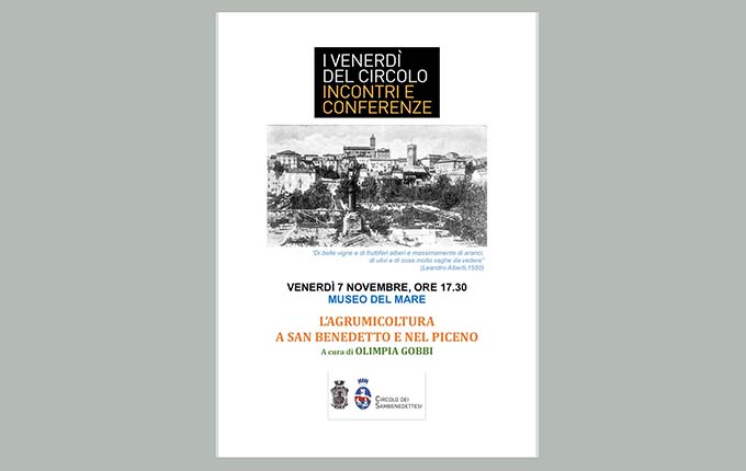 Per “Le Conferenze del Circolo dei Sambenedettesi” appuntamento il 7 novembre al Museo del Mare con Olimpia Gobbi e la storia dell’agrumicoltura nel Piceno –