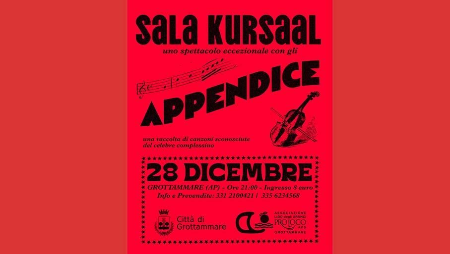 “Appendice” in concerto il 28 dicembre al Kursaal di Grottammare