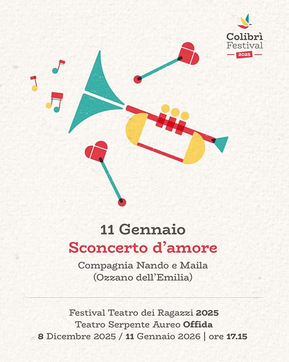 OFFIDA – Il Colibrì Festival si avvia al gran finale con uno spettacolo sorprendente, capace di unire teatro fisico, circo contemporaneo e musica dal vivo in un’unica, irresistibile partitura scenica: “Sconcerto d’amore” della Compagnia Nando e Maila. In scena al Teatro Serpente Aureo prende vita una storia d’amore travagliata, ironica e piena di colpi di scena, dove l’intesa (e il disaccordo!) tra i protagonisti diventa motore di gag, poesia e acrobazie. Tra trapezio, tessuti aerei e una struttura musicale che si trasforma in un’orchestra imprevedibile, lo spettacolo costruisce un vero e proprio crescendo emotivo: si passa dal rock al pop, dall’opera alla musica classica, fino a un finale sospeso tra armonia e magia. “Sconcerto d’amore” è un concerto-spettacolo che incanta pubblici diversi: famiglie, bambini e adulti. Un invito a lasciarsi trascinare dal ritmo, dal gioco e dalla meraviglia, per salutare insieme il festival con un pomeriggio di emozioni e leggerezza. Ingresso gratuito. Per informazioni e prenotazioni: 39 333 4358929. Iniziativa del Comune di Offida in collaborazione con AMAT, promossa dall’Unione Montana del Tronto e Valfluvione e sostenuta dalla Regione Marche – Fondi POC 2014-2020 (SNAI Ascoli Piceno).