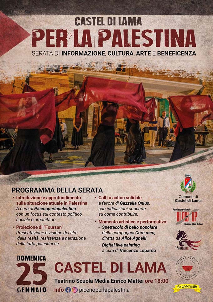 Home Castel di Lama per la Palestina: informazione, cultura e beneficenza al Teatro della “Mattei” 2026-01-21_Castel di Lama per la Palestina