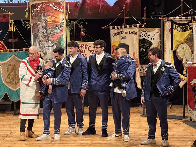 OFFIDA – È stata la Congrega dell’Aquila a ricevere quest’anno le simboliche chiavi della città, dando ufficialmente il via alla settimana più intensa del lungo Carnevale storico di Offida, iniziato il 17 gennaio. Un momento, quello del giovedì grasso, carico di significato, che segna l’inizio di quel tempo sospeso tanto caro alla tradizione locale, capace di unire generazioni diverse nel segno della partecipazione, della tradizione e del folklore. L’edizione di quest’anno è stata impreziosita anche da importanti anniversari che testimoniano la vitalità dei Gruppi mascherati. A tagliare traguardi significativi sono stati tre gruppi storici: il gruppo femminile del Boa Rosso e le Guardie Svizzere che celebrano i 20 anni di attività e I Mus Nir, protagonisti di ben 80 anni di storia carnevalesca. Un percorso fatto di passione, creatività e impegno collettivo, capace di mantenere viva una tradizione che continua a rinnovarsi senza perdere le proprie radici. Inoltre è stato presentato il nuovo stendardo della Congrega del Grilli (ex Allegra Nobiltà). Non è mancato, durante la cerimonia, un momento di riflessione dedicato a chi non c’è più. Il ricordo delle persone che hanno vissuto e costruito il Carnevale con entusiasmo ha attraversato i discorsi istituzionali e gli interventi della comunità, sottolineando come ogni edizione sia anche un’occasione per custodire la memoria e riconoscere il valore umano di chi ha contribuito alla crescita della festa. Il sindaco Luigi Massa ha ricordato Nazzarena, Reno e Annibale. Infine il primo cittadino ha voluto rivolgere un messaggio alla cittadinanza e ai visitatori: «Auguro a tutti di vivere l’intensa settimana del Carnevale offidano con serenità, gioia e divertimento».
