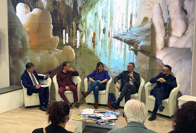 A sigillo del viaggio sensoriale, l’arte calligrafica di Marta Lagna ha impreziosito per gli ospiti raffinati carnet in carta di Fabriano, emblema secolare dell’arte cartaria marchigiana. Un format che ha fatto vivere le Grotte non solo con gli occhi, ma con tutti i sensi: un assaggio perfetto del territorio, dal carsismo millenario all’artigianato vivo. Al panel che si è tenuto in fiera, nello stand della Regione Marche, il focus è stato la valorizzazione delle Grotte attraverso la musica: un percorso che negli anni ha portato Frasassi a collaborare con Il Volo, Andrea Bocelli, Casa Sanremo e Musicultura, promuovendo il sito naturale nei circuiti mediatici nazionali come simbolo di eccellenza italiana e attirando nuovi pubblici di alto profilo. Le Grotte confermano anche per il 2026 questa linea. «Un’idea nata durante il Covid con il concerto di Andrea Bocelli nelle Grotte, una vera e propria luce nella disperazione del  periodo – ha ricordato il sindaco di Genga, Marco Filipponi –Oggi riconfermiamo per il secondo anno il sodalizio con Musicultura, unendo due grandi simboli del nostro territorio».