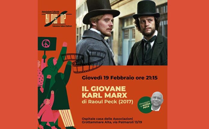 GROTTAMMARE – Prosegue la 31esima stagione dell’Associazione Blow Up di Grottammare, intitolata “Sumud – Antiche e Nuove Resistenze tra cinema, arte e politica” con la minirassegna tematica dedicata al grande regista e politico Haitiano Raoul Peck e intitolata “Omaggio a Raoul Peck”, giovedì 19 febbraio alle ore 21.15, presso l’Ospitale Casa delle Associazioni – Grottammare Alta, verrà proiettato il secondo film in programma: “Il giovane Karl Marx” (2017) biografia dall’impianto classico che propone un Marx inedito, ribelle e romantico . “Diciannovesimo secolo l’Europa è in fermento. In Inghilterra, Francia e Germania i lavoratori scendono in piazza per protestare contro le durissime condizioni nelle fabbriche, e gli intellettuali partecipano come possono all’opposizione. Uno di loro, il tedesco Karl Marx, a soli 26 anni è costretto a rifugiarsi a Parigi insieme alla moglie Jenny. Qui Karl conosce un suo coetaneo, Friedrich Engels, che, nonostante provenga da una ricca famiglia di industriali, simpatizza con le sue idee rivoluzionarie. Superate le prime resistenze, fra i due ragazzi nasce una solida amicizia che li porterà a conquistarsi la stima dei capi dei movimenti dei lavoratori. Fino a diventarne leader a loro volta. Peck riesce a rappresentare Marx come uomo prima che come filosofo, come artista prima che come teorico, raccontarlo arrabbiato, innamorato, umiliato, ubriaco, come fosse una persona normale.” (mymovies.it)