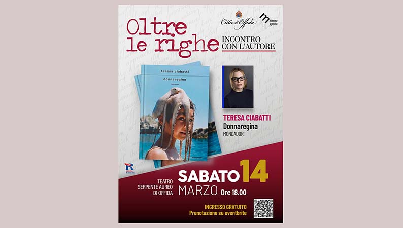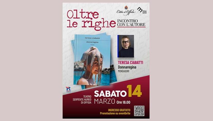 OFFIDA – Offida si prepara ad accogliere Teresa Ciabatti, tra le autrici più intense e discusse del panorama letterario italiano, protagonista del nuovo appuntamento della rassegna “Oltre le righe – Incontro con l’autore”. L’evento si terrà sabato 14 marzo alle ore 18, al Teatro Serpente Aureo. Scrittrice e sceneggiatrice, finalista al Premio Strega 2017, Ciabatti si è affermata negli anni come una voce unica e riconoscibile, capace di trasformare l’autobiografia in una narrazione affilata e profondamente umana. Nei suoi romanzi la confessione diventa materia letteraria e la provocazione uno strumento per indagare identità, memoria e relazioni, senza mai inseguire il consenso facile. Durante l’incontro l’autrice presenterà il romanzo “Donnaregina” (Mondadori), un’occasione per incontrare da vicino una protagonista della narrativa contemporanea, la cui voce divide, sorprende e lascia un segno profondo nei lettori. L’iniziativa è promossa dal Comune di Offida in collaborazione con la Biblioteca Comunale e la Libreria Rinascita, con l’obiettivo di offrire alla comunità momenti di confronto culturale e avvicinare il pubblico alla letteratura contemporanea. «Questa iniziativa nasce da una visione precisa: rafforzare il ruolo della nostra Biblioteca come spazio vivo e in costante crescita – ricorda l’assessora Marica Cataldi – non solo luogo di conservazione dei libri, ma presidio culturale capace di generare incontro e partecipazione. La cultura condivisa è uno strumento di crescita collettiva: è questo lo spirito che guida il nostro impegno. La risposta del pubblico a Oltre le righe ci conferma che stiamo costruendo una comunità che riconosce nella cultura un valore essenziale e irrinunciabile». Ingresso gratuito con prenotazione online: https://www.eventbrite.it/e/presentazione-del-libro-donnaregina-di-teresa-ciabatti-tickets-1982349251976